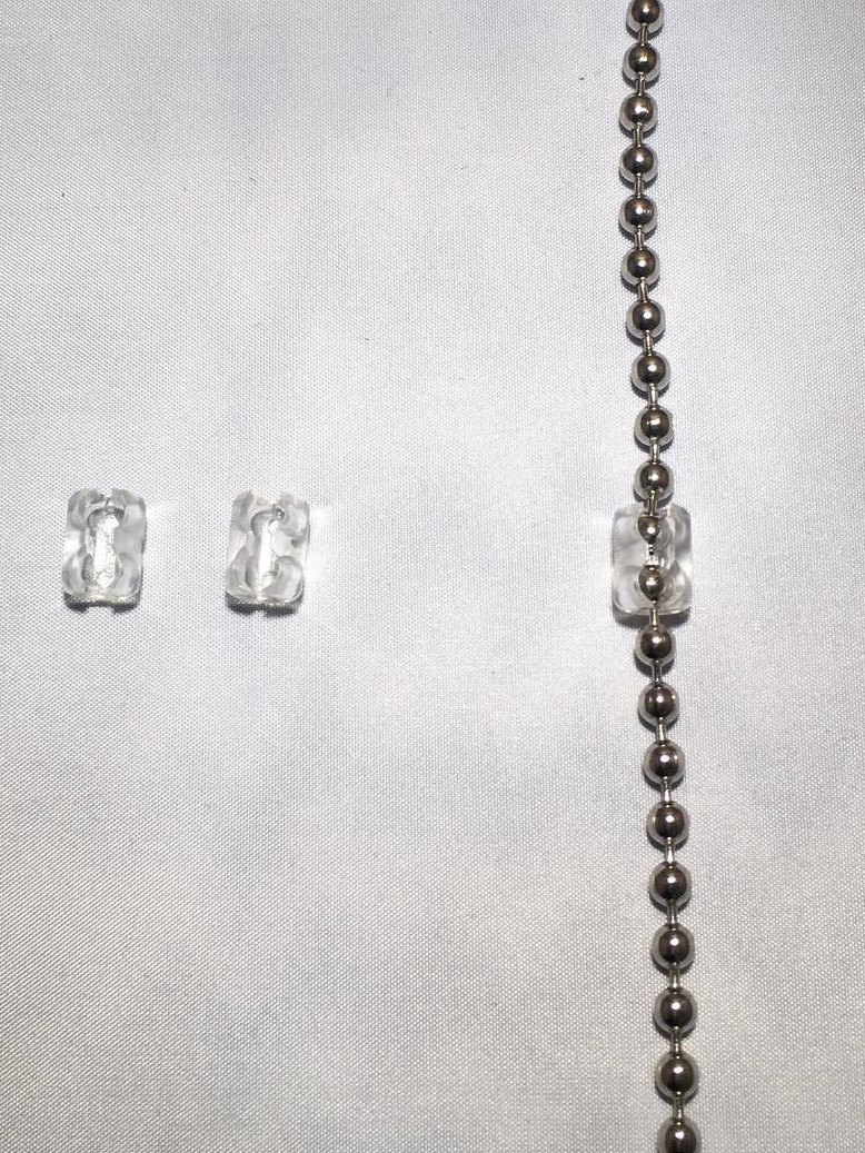 This device is to ensure chains on roller, roman and some other vertical blinds using chain will break apart when necessary.